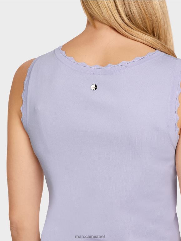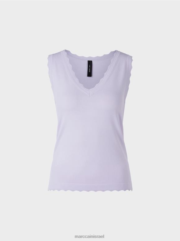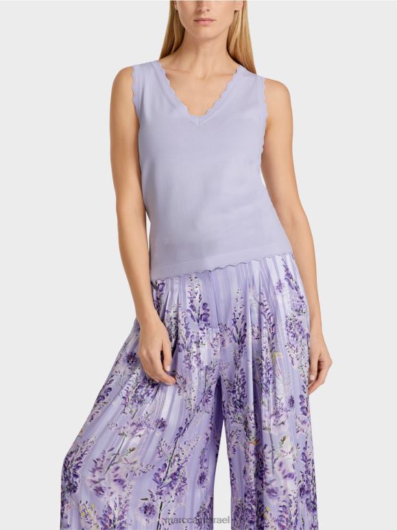 לחלק העליון ללא שרוולים יש צווארון V צונח שהופך אותו לאוורירי ונוח ללבישה. הוא סרוג בחוט ויסקוזה עדין ומרגיש קריר נעים על העור. הגזרה הגלי על המכפלת, הצוואר והזרועות היא תכונה המושכת את העין.