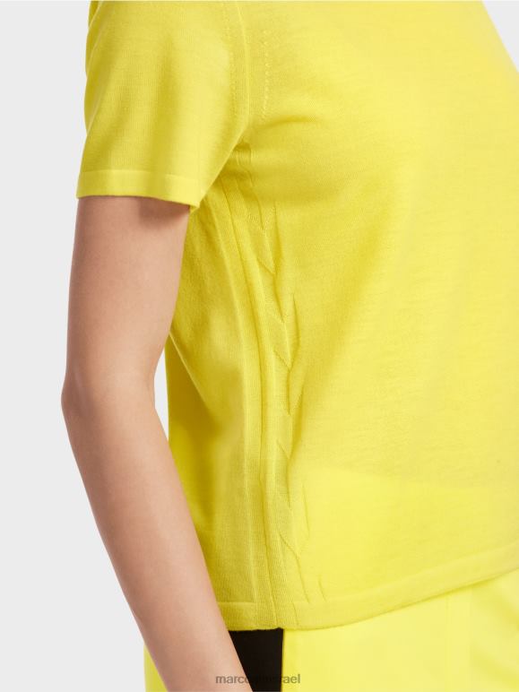 הסוודר הזה עם השרוול הקצר מגיע מהתווית הקיימות "לחשוב מחדש ביחד". הוא סרוג מצמר חדש טהור ויש לו פרטים מוטבעים בצדדים. הצוואר העגול והצורה הישר מעניקים לו מראה ספורטיבי. פרט מבריק הוא הלוגו המתכתי של Marc Cain בגב.