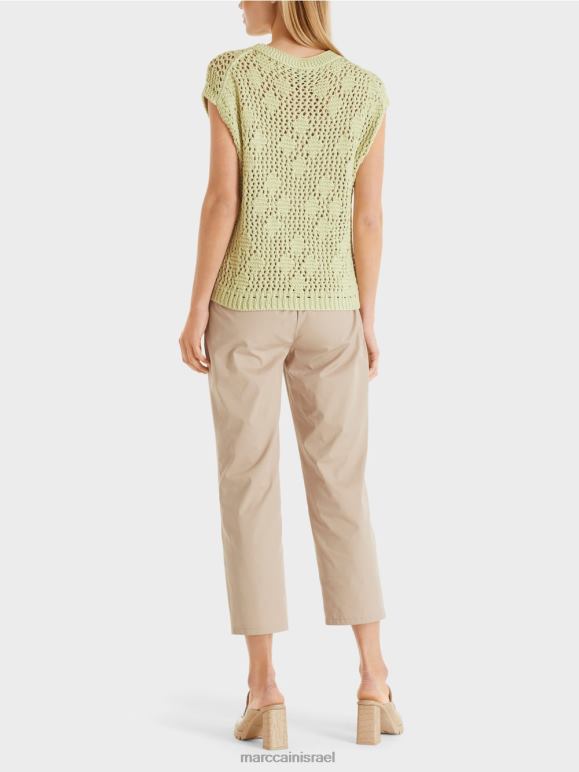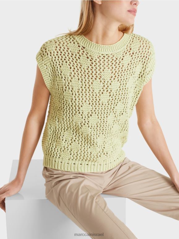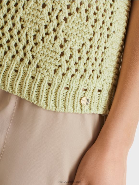 עליונית סרוגה במידות גדולות עם כתפיים שמוטות. הוא כולל גב דמוי רשת המשולב ביהלומים ממוקמים באופן שווה. הצורה הישרה מודגשת על ידי תפרי צד סרוגים מצולעים וחורי זרוע.