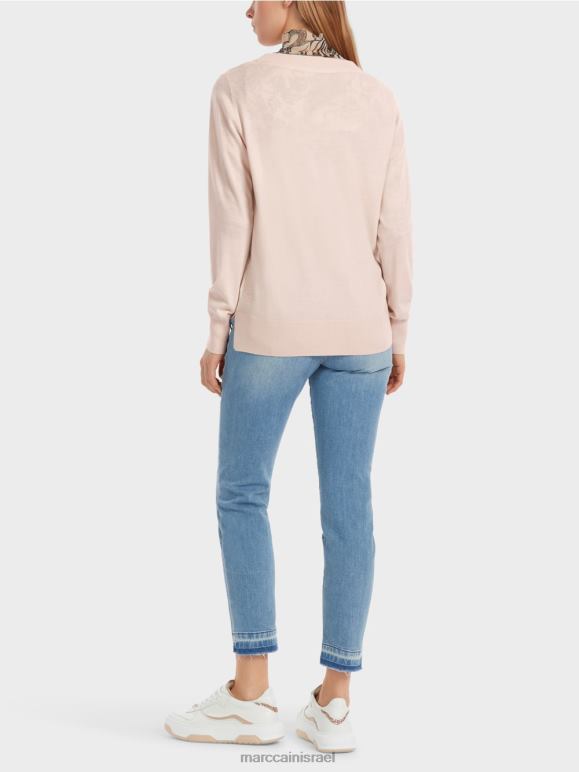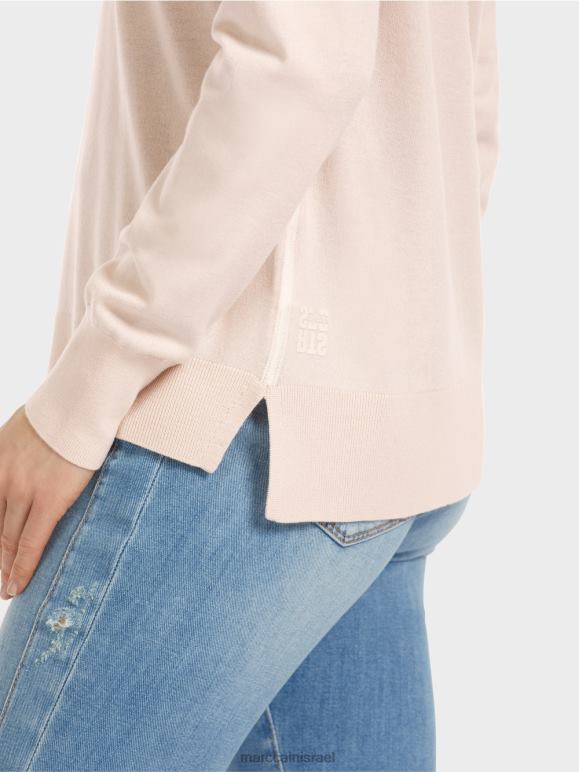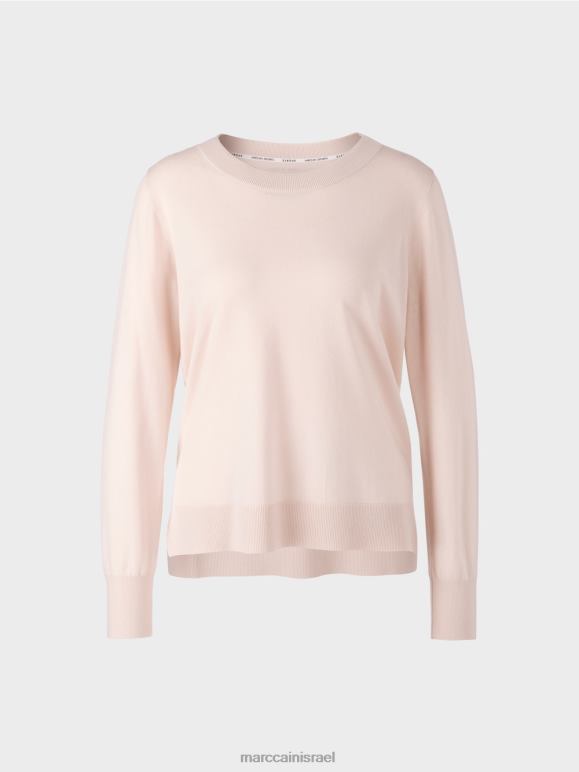 הסוודר הסרוג נושא את תווית הקיימות "לחשוב מחדש ביחד". תערובת החומרים האלגנטית הופכת אותו לקליל ורך. הגזרה היא ברובה קלאסית ומוגדרת באמצעות צוואר עגול וחפתים סריג ושולי. היבטים אופנתיים מופיעים בפס המנוגד בתפרי הצד - ובחרכי הצד.