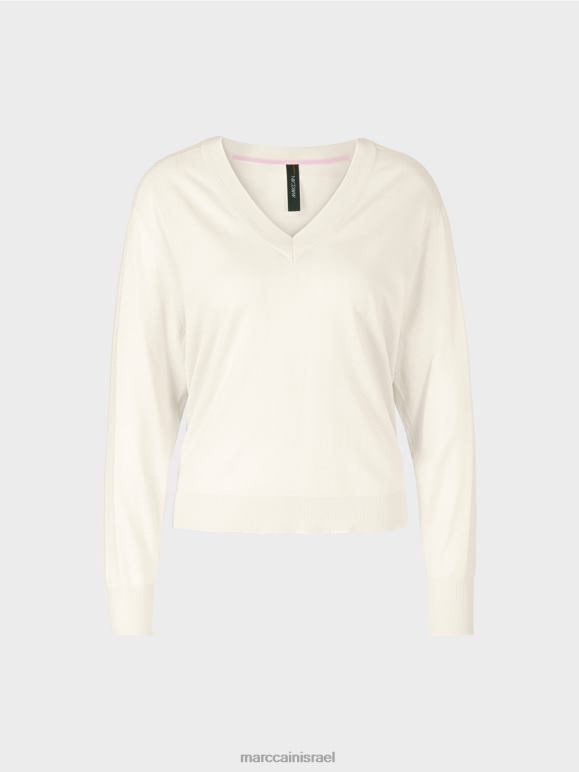 הצללית הזורמת של הסוודר הזה נובעת מתערובת עדינה של חוטי כותנה ומשי. דפוס המרקם העובר על הכתפיים והשרוולים מוסיף פרט עדין. קו הצוואר, השרוולים והשולי מוגמרים בצורה קלאסית עם חפתים מצולעים.