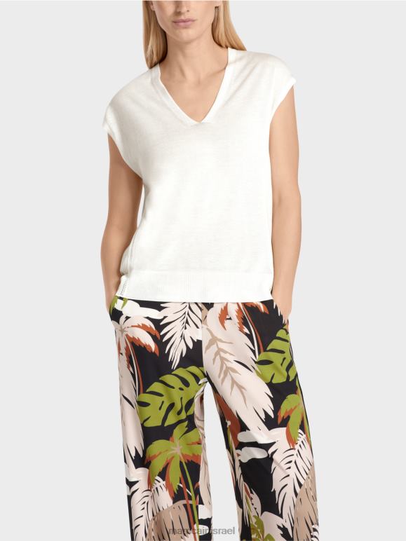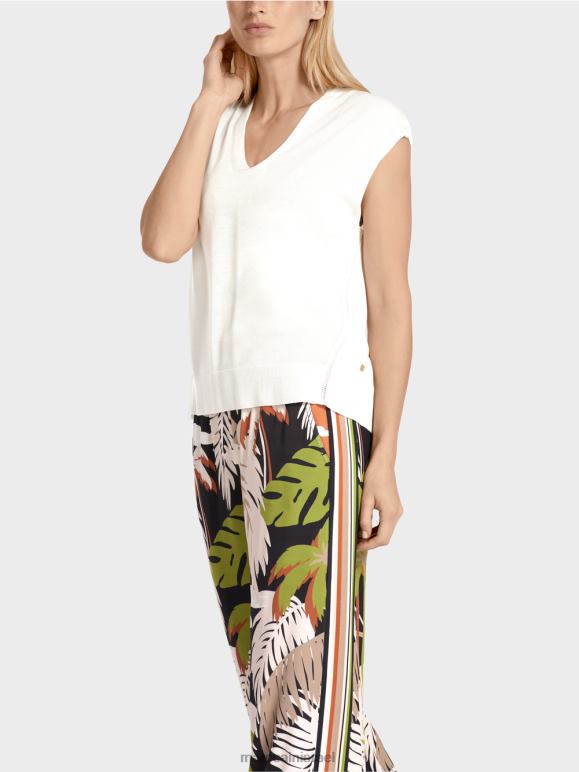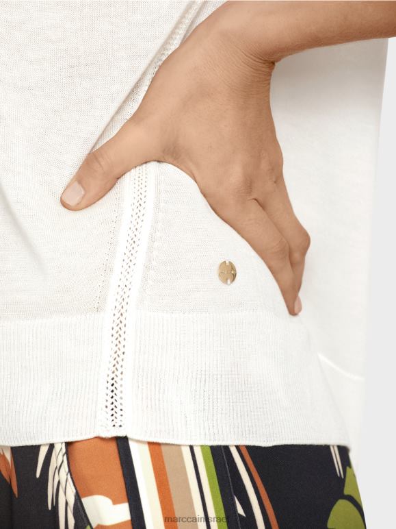 הגזרה הישרה והכתפיים הנפולות מעניקות לסוודר הסרוג ללא שרוולים זה את הצללית האופנתית שלו. הוא עשוי מסיב Lyocell על בסיס תאית ומרגיש קריר וחלק על העור. התפירה הדקורטיבית הדינמית בסריג פתוח בחזית מוסיפה פרט בולט.