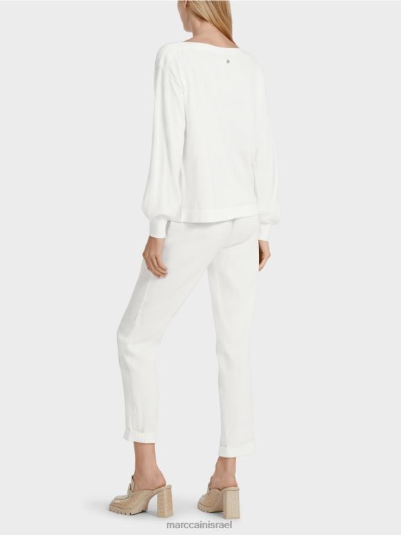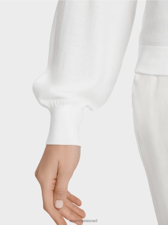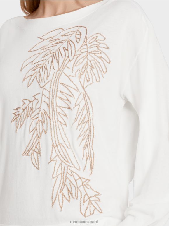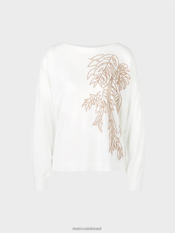 סוודר סרוג דק במיוחד עם צווארון. המכפלת נופלת ברפיון והשרוולים הארוכים מסיימים עם שרוול סריג מצולע. המוטיב הרקום ממוקם בצורה א-סימטרית בהשראת טכניקות אומנות מסורתיות.