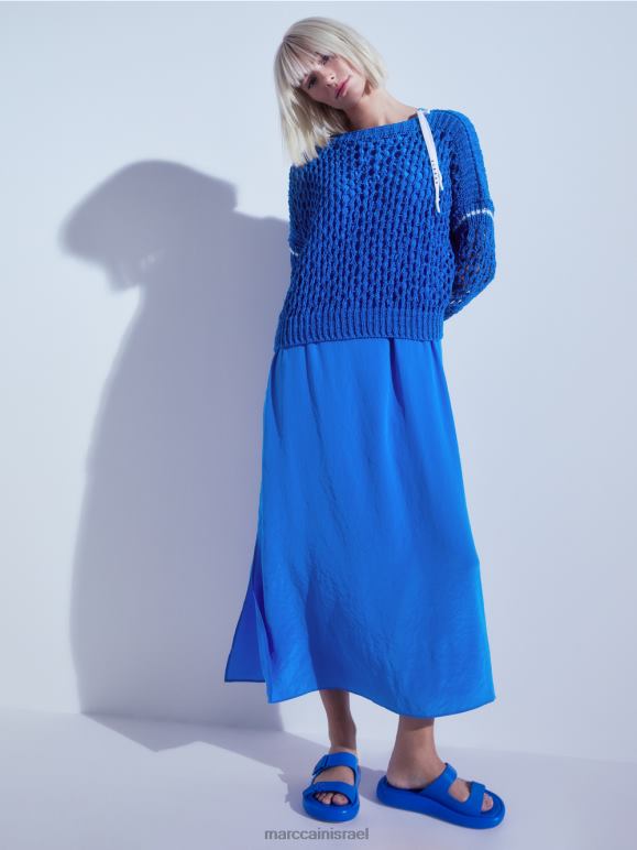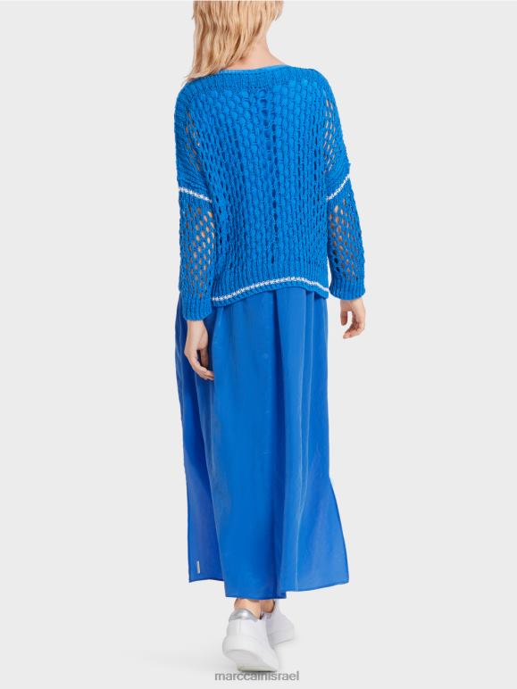 סוודר סרוג בגזרה רחבה בעיצוב חורים עם פסים מנוגדים. עם הצוואר העגול והחפתים המצולעים, הסוודר הזה מציג את עצמו במראה ספורטיבי. החצאית סרוגה וגם בגימור בגרמניה. המשך העיבוד של החלקים הבודדים מתבצע על ידי חברות שותפות אירופאיות. זה אומר שהפריט "סרוג בגרמניה".