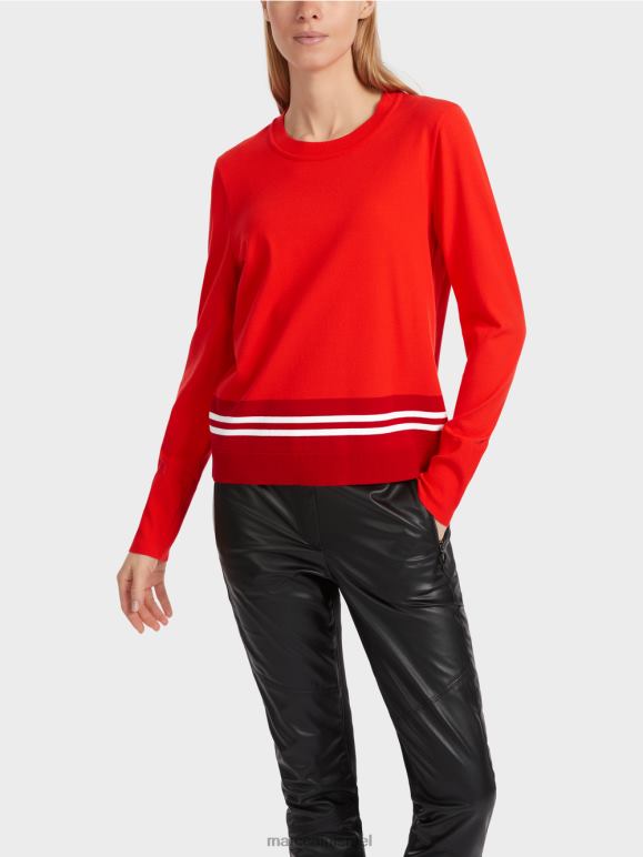 סוודר הצמר עשוי מחוט על בסיס ויסקוזה ויש לו צללית רכה זורמת. החתך צר בכתף ורחב בגוף. המכפלת מודגשת עם גבול מפוספס. המגשר נושא את תווית הקיימות "חשבו מחדש ביחד". כמו כן, הפריט הוא "סרוג בגרמניה". הוא סרוג ומקושט בגרמניה תוך שימוש בטכנולוגיות העדכניות ביותר. החלקים הבודדים, כגון הגב והשרוולים וכו', תפורים יחד בחברות שותפות אירופאיות.