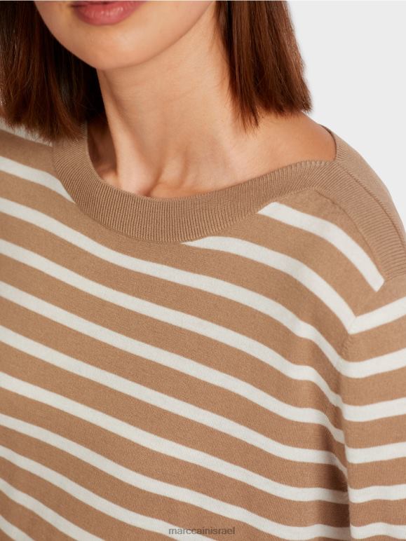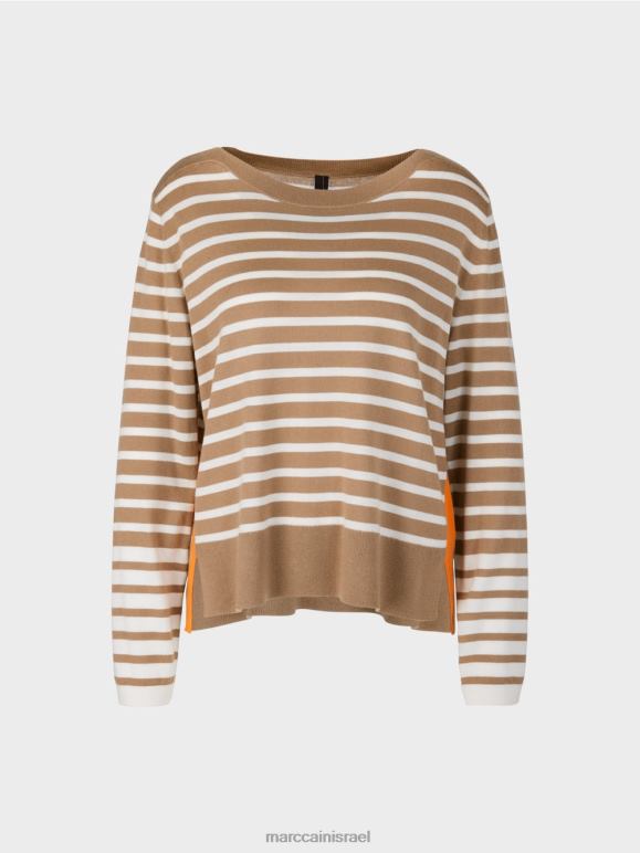 סוודר סרוג באיכות גבוהה עם צמר וקשמיר. פסי הצמה בצבעים מנוגדים נותנים מבטא ייחודי לעיצוב הפסים הספורטיבי של הסוודר הזה. צוואר הסירה וחרכי הצד מדגישים את המראה הרגוע, וכך גם הצורה הקופסתית.