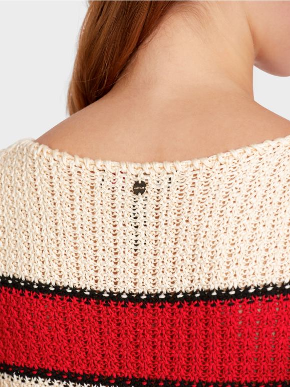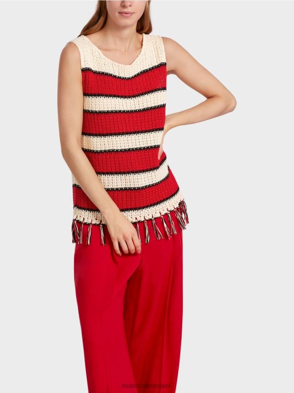טופ ללא שרוולים זה עשוי מכותנה אורגנית ונושא את התווית "לחשוב מחדש ביחד". הוא עשוי מבד סרוג אוורירי דמוי תחרה, והוא משולב עם שוליים מסוגננים על המכפלת. החלק העליון הסרוג הזה הוא "סרוג בגרמניה". הוא סרוג וגימור בגרמניה תוך שימוש בטכנולוגיה העדכנית ביותר והחלקים הבודדים כמו השרוולים והחזית וכו' נתפרים יחד בחברות השותפות האירופיות שלנו.