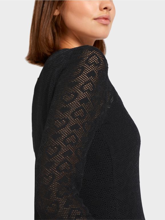 סוודר קל משקל בשילוב של חומרים עם עיצוב מחורר בצורת לב. הסוודר השקוף הצבעוני הזה נסרג והושלם בשטח שלנו בגרמניה. עיבוד נוסף של החלקים הבודדים מתבצע על ידי החברות השותפות שלנו באירופה. זה הופך את עיצוב הצוואר ל"סרוג בגרמניה". הצללית חובקת דמות.