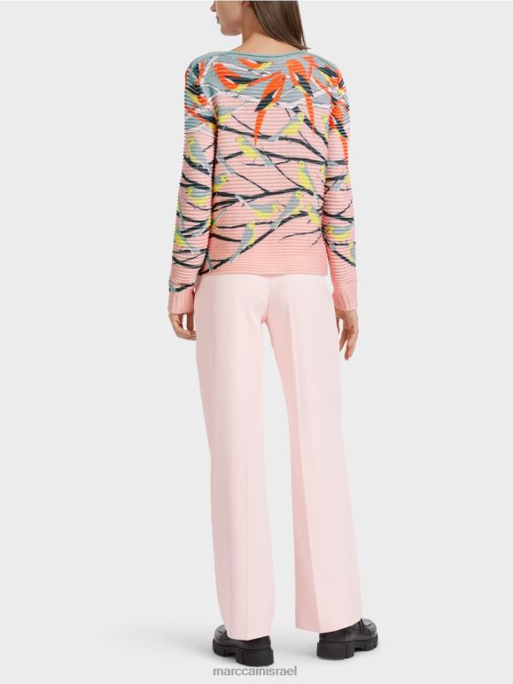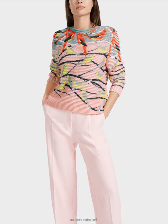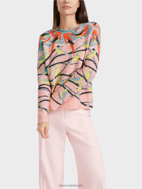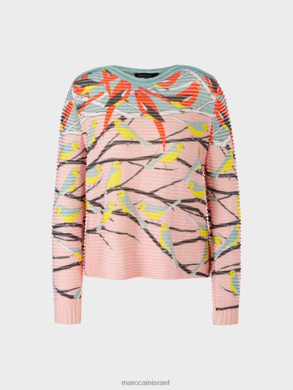 סוודר בגזרה קז'ואל העשוי מתערובת חומרים עם צמר וויסקוזה. לסוודר הסרוג הזה יש קו צווארון ומבוקר עם עיצוב הציפורים האקסטרווגנטי שלו עם צלעות צולבות. היצירה "סרוגה בגרמניה": סריגת החוטים במכונות סריגה אולטרה-מודרניות וגימור הבדים מתבצעים בגרמניה. החלקים הבודדים, כגון שרוולים, חלק קדמי וכו', נתפרים יחד בחברות שותפות אירופאיות.