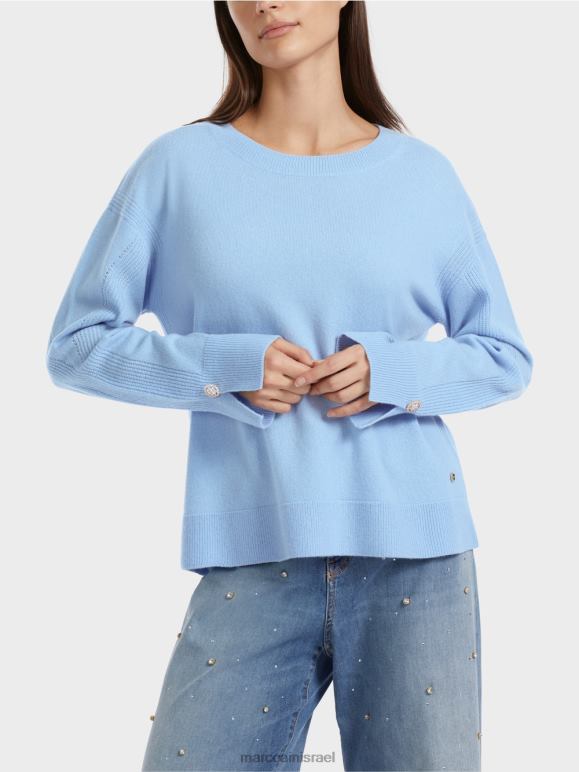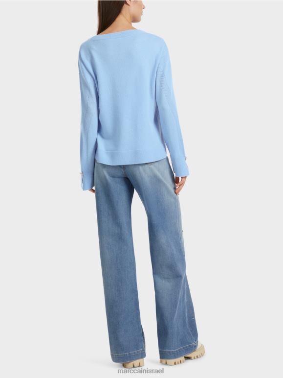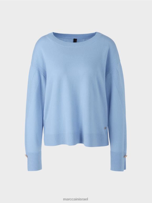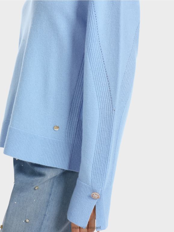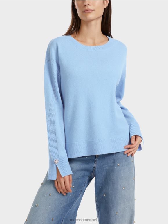 מגשר סרוג בתערובת אלגנטית של קשמיר וצמר. הסוודר הזה משכנע עם הגזרה הקז'ואלית שלו ופרטי הסריגה המצולעים. כמו כן, הוא מקבל ציון גבוה עם שרוולי השסע שלו מעוטרים בכפתור. צווארון רחב משלים את המראה.