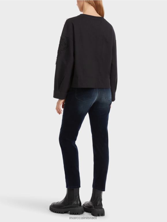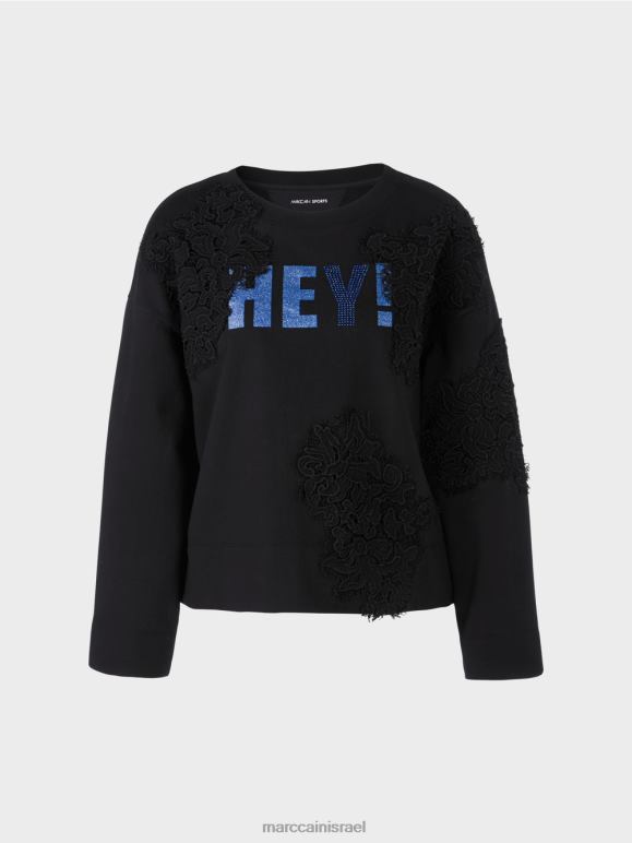 הסווטשירט עשוי מג'רסי על בסיס כותנה. קלאסי בעיצוב, זה עובד באמצעות הדפסה ויישום. התחרה המיושמת נראית כאילו הדגם הפך בעצמך (עשה זאת בעצמך). הדפס התסריט העשוי מחלקיקי נצנצים ואבנים מוסיף נופך של זוהר.
