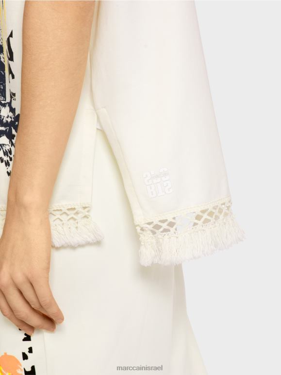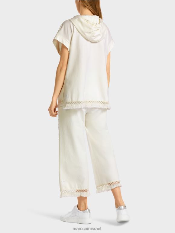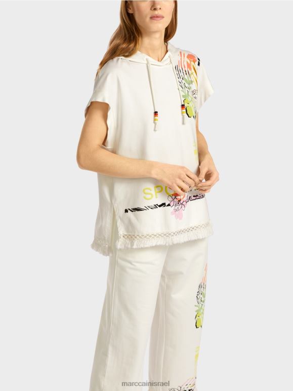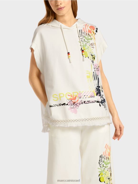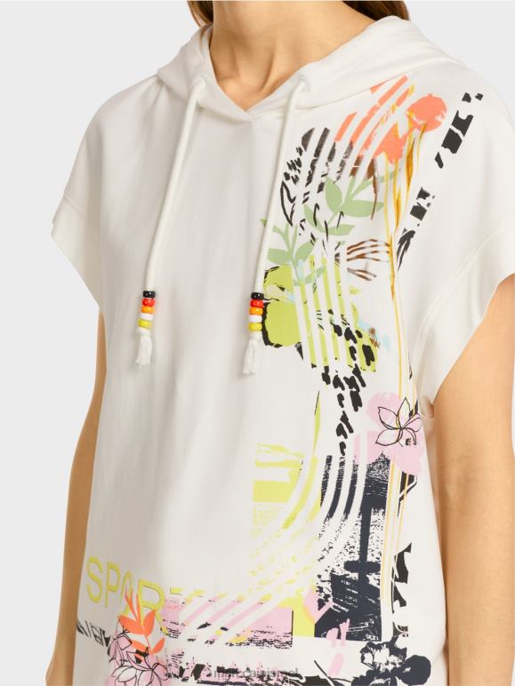 סוודר כותנה ספורטיבי ברוחב סתמי. הדפוס הפרחוני הצבעוני בצד שמאל נותן לסוודר הזה אווירת קיץ שובבה. השוליים המסוקסים המסוגננים על שולי השסע הנינוח מהווים תוספת אוורירית. הכתפיים הנפולות מובילות לעיצוב ללא שרוולים. מכסה המנוע הגדול עם חוט חרוזים מספק גימור סתמי.