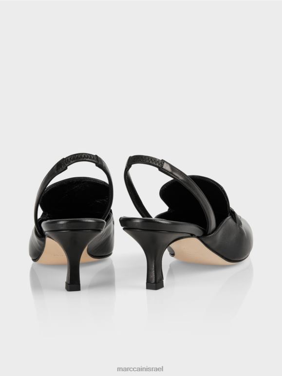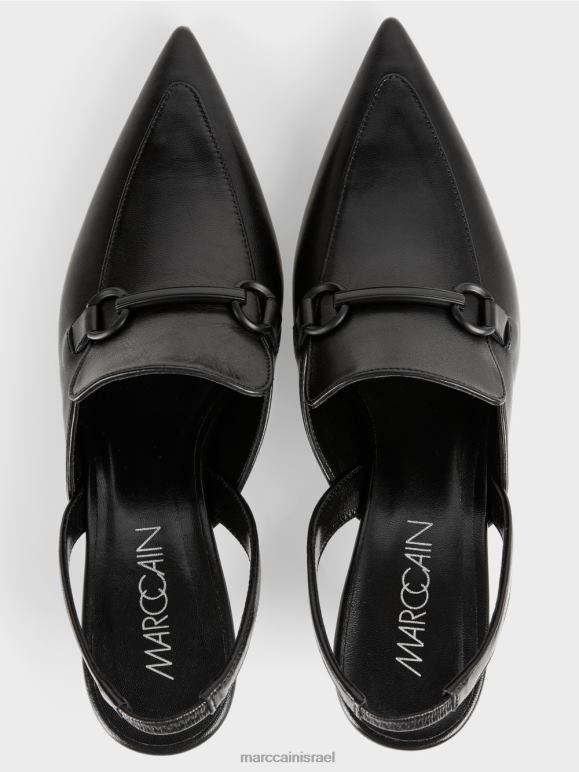 נעליים איכותיות עם רצועות דקורטיביות ואצבע מחודדת. לעקבים האלגנטיים יש עקב עטוף ולשון ארוכה. תפר דקורטיבי מדגיש את הצורה המחודדת. העקב פתוח ומגיע עם רצועה.