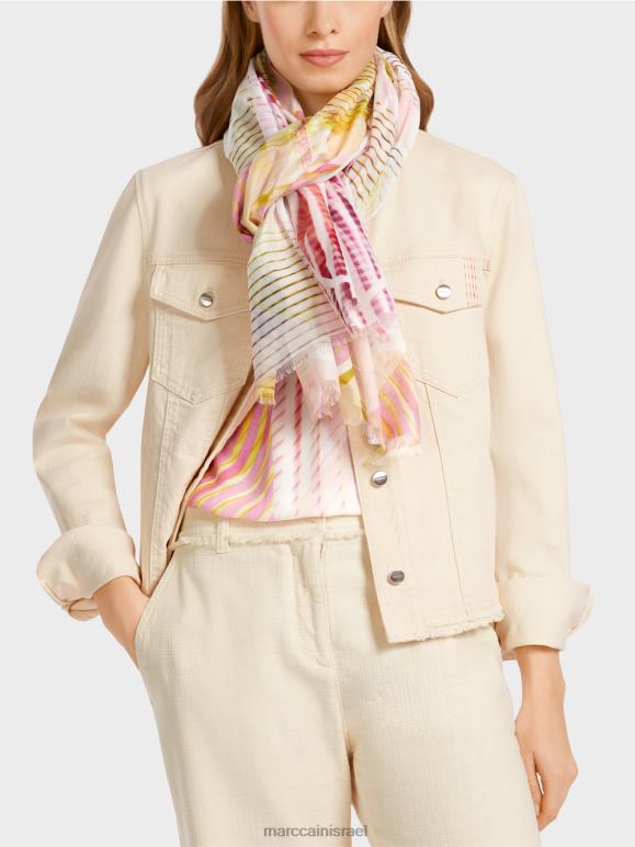 צעיף צבעוני מכותנה עם משי. שילוב עליז של פסים אסימטריים מעניק לצעיף הזה את המראה הייחודי שלו. הוא גם בולט בסגנון העטוף ברכות שלו. ובעוד שהצדדים הארוכים מכופפים דק, שוליים קצרים בקצוות הצרים מדגישים את הסגנון הרגוע.