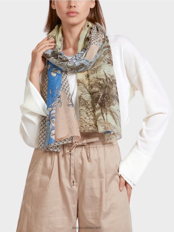 הצעיף ארוג בתערובת משובחת וקלת משקל של כותנה ומשי. מוטיבים פרחוניים גדולים משולבים בצורות גיאומטריות קטנות בשילוב של דוגמאות. לקצוות יש שולי תפירה.