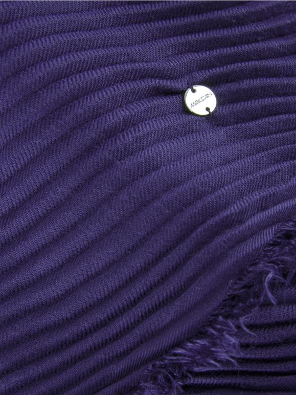 הצעיף הרך והנעים הזה עשוי מתערובת קלת משקל של ויסקוזה ופוליאסטר. צורתו המוארכת מעוטרת בקפלים. השולי גמור עם שוליים קטנים מסביב, מדגישים את האווירה הפלרטטנית שלו.