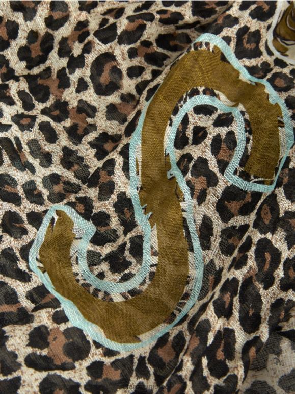 צעיף בתערובת מודאלית זורמת ברכות, פשתן ומשי. הדפס הנמר מודפס באותיות ספורט גדולות של Marc Cain, מה שמעניק לו אווירה מרגשת. הצעיף ארוך והקצוות תפורים.