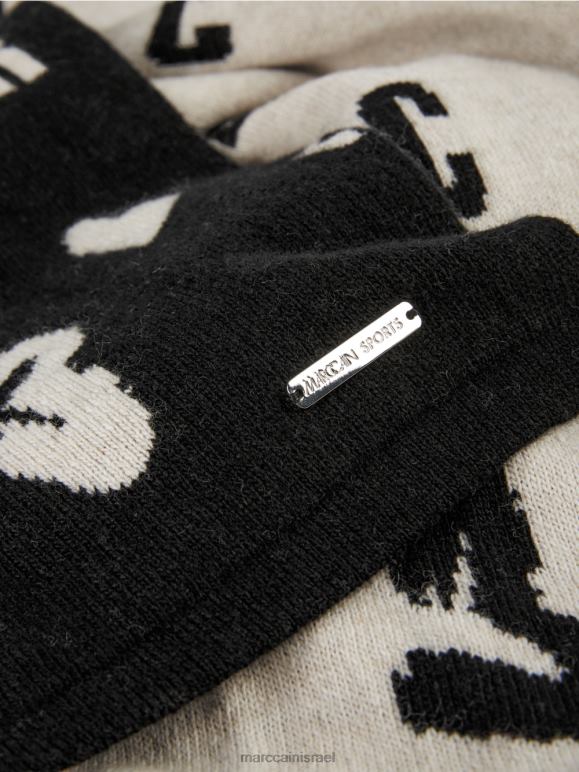 הצעיף עשוי מחוט חביב עם תוכן קשמיר. דוגמת הפיזור סרוגה ומכילה מוטיבים כמו אותיות, לבבות וסמיילים. יעיל, עיצוב הצבע השלילי על הגב. קצוות וקצוות ארוכים של הצעיף מסתיימים בצורה חלקה.