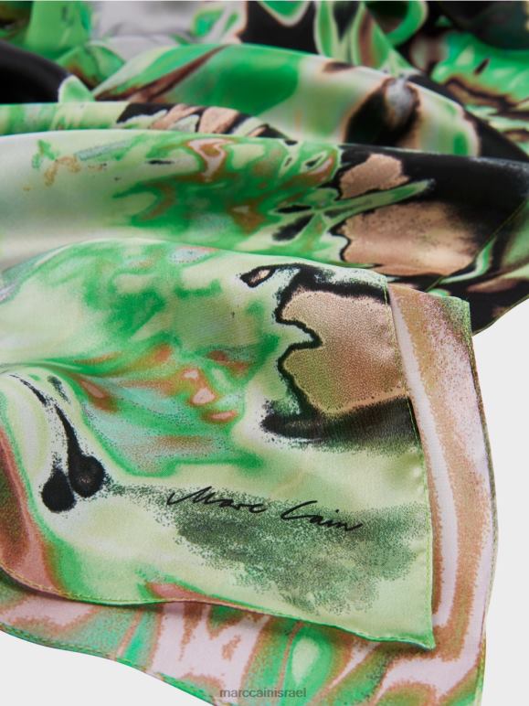שָׁחוֹר Marc Cain צעיף משי עדין בעיצוב פרחוני אבזר 62FRR1663