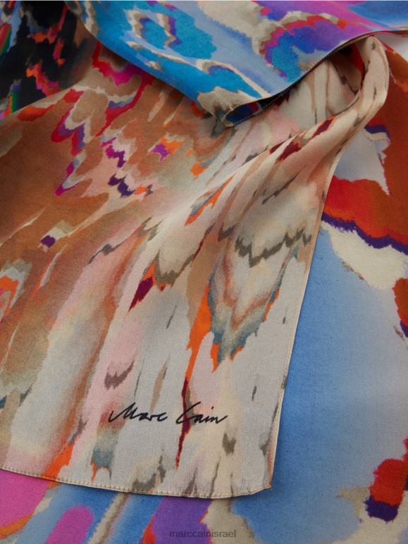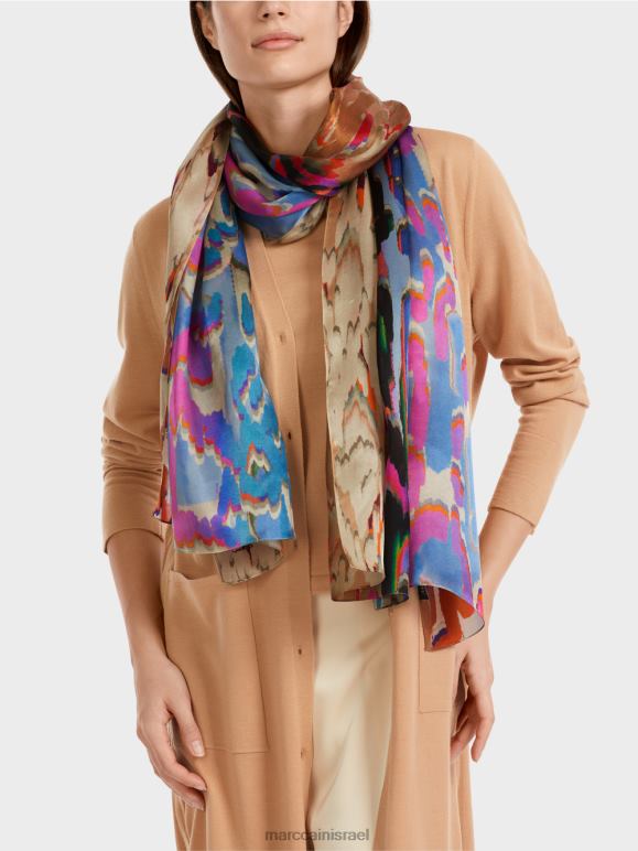 ההדפס הצבעוני על הצעיף האלגנטי הזה נראה כאילו הוא נצבע. הוא עשוי ממשי איכותי ויש לו מכפלת עדינה. הצורה המוארכת מאפשרת לצעיף קל משקל להתכסות כלאחר יד סביב הכתפיים.