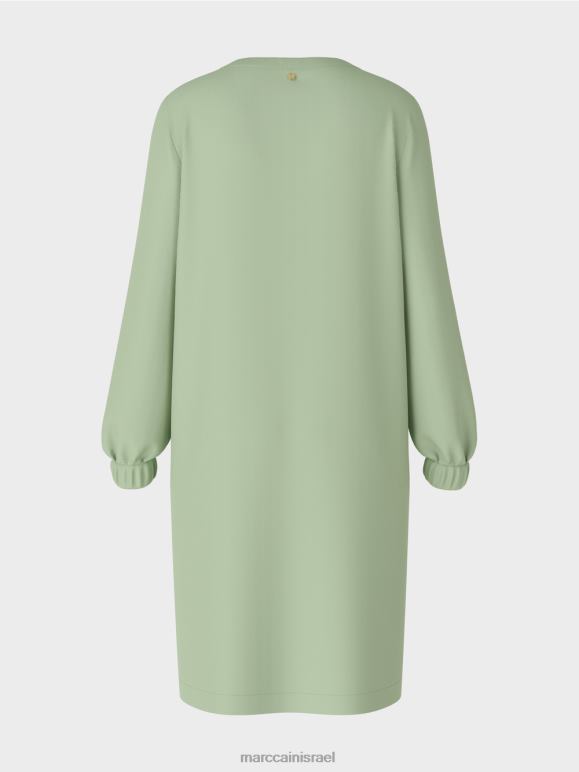 השמלה הקצרה והספורטיבית הזו משוחררת כלאחר יד וישרה. ניתן ללבוש אותו גם עם מכנסיים צמודים. קו הצוואר מסיים עם פרטי סריג מצולעים רכים. לשולי השרוול יש עיטור אלסטי רחב. אפקטי התפר בחלק הקדמי המרכזי יוצרים מראה מסוגנן.