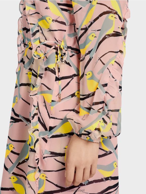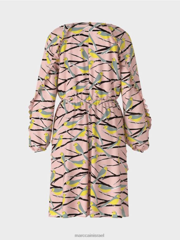 שמלה שובבה עשויה ויסקוזה רך וזורם. שמלה זו כוללת עיצוב ציפורים צבעוני שמובטח למשוך מבטים מתעניינים. פרטי סלסול בתפרים מדגישים את הסגנון הרומנטי. השמלה מגיעה גם עם חפתים אלסטיים ושרוך מותניים נינוח. הוא מהדק מאחור עם כפתור עדין.