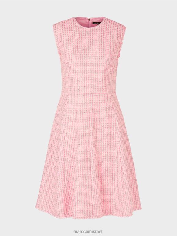 החלק העליון הצמוד וחצאית הפאנל המצורפת מזכירים את שנות ה-50. גם המרקם החומרי וגם העיצוב נראים לזמן הזה. החלק העליון מעוצב בתפרי נסיכות העוברים לפנלים רחבים מתנדנדים בחלק התחתון. השמלה מהודקת מאחור עם רוכסן תפר. יש שוליים מגניבים בשולי החצאית ובחורי הידיים.