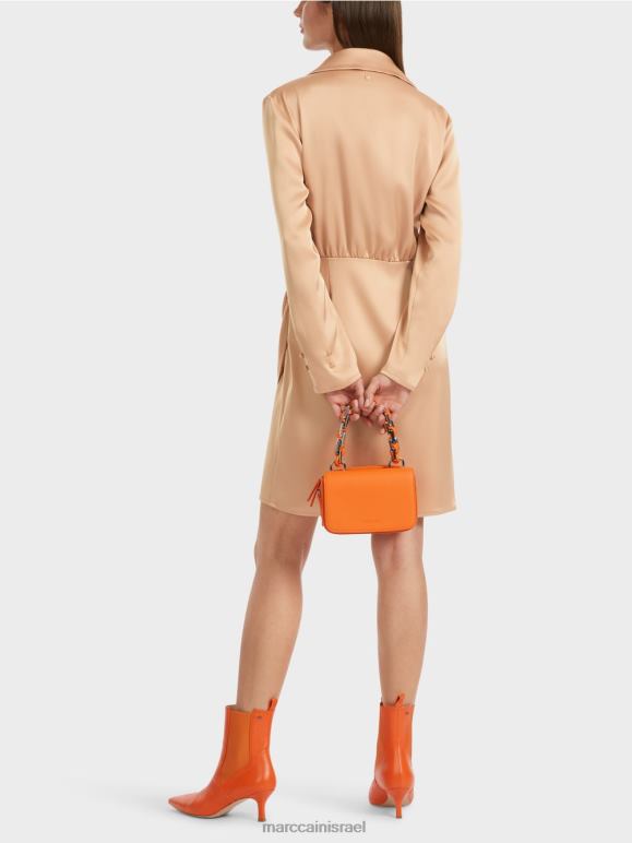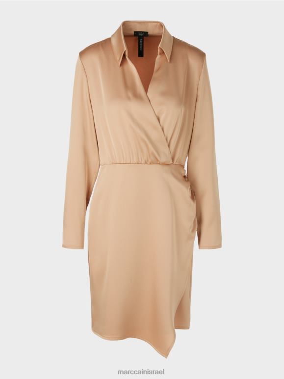 שמלה עם צללית חובקת דמות עשויה מחומר רך זורם עם אלסטן. אפקט העטיפה הקז'ואל נותן לשמלה זו את המגע הנשי שלה. כמו כן, הוא מספק צווארון V עמוק וקו מכפלת א-סימטרי. השרוולים הארוכים מעוטרים בחפתים רחבים. צווארון חולצה משלים את העיצוב.