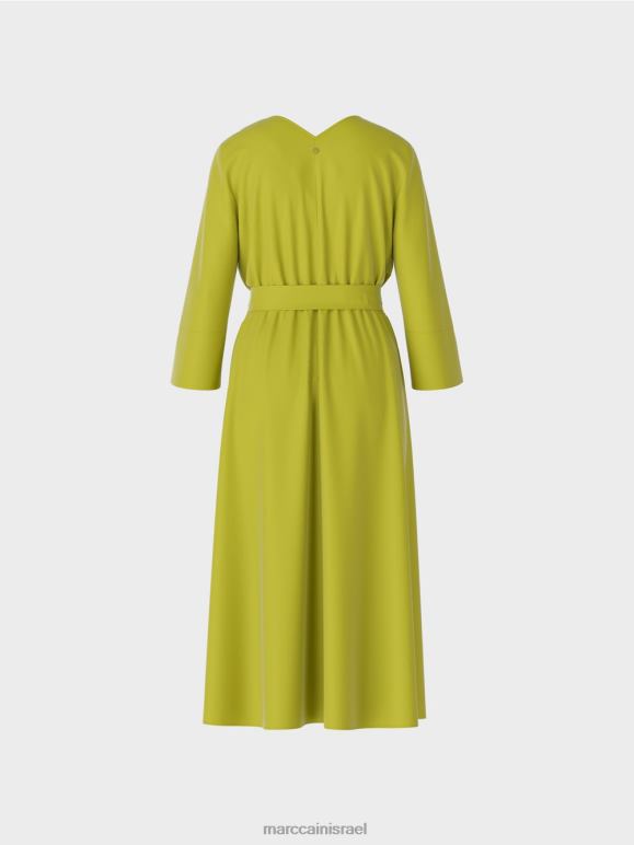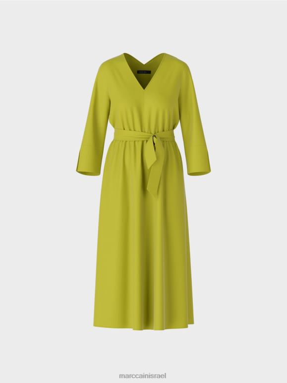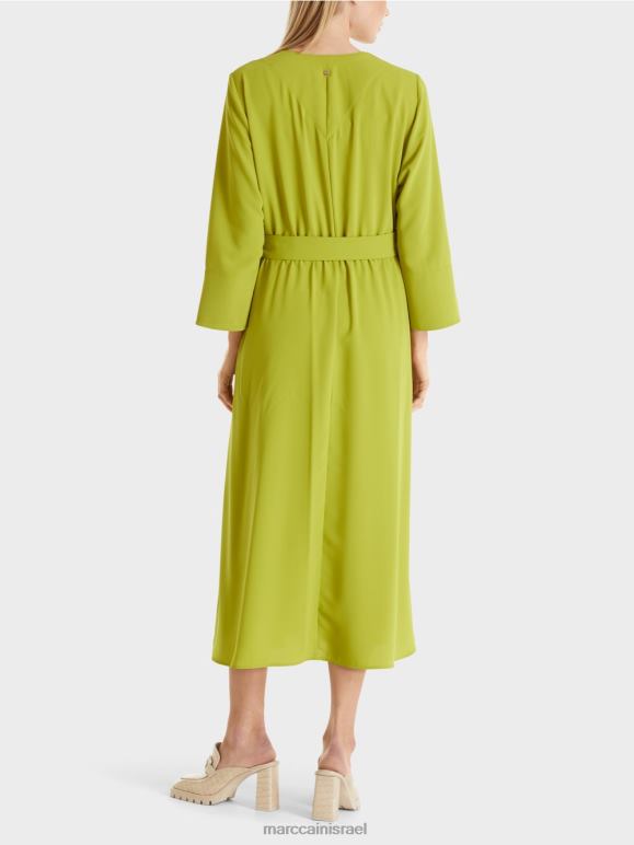 השמלה עשויה מחומר זורם ובעלת צללית חובקת גוף. המותניים מודגשות עם המותניים האלסטיות הצרות והחגורה. הפריט מציג את עצמו עם צווארון V וחפתים מחורצים. תליון לוגו קטן ממוקם בצוואר.