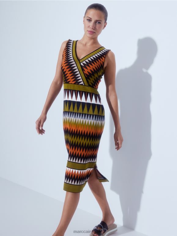 האסתטיקה הצבעונית מזכירה אופנה משנות ה-70 ובשילוב עם העיצוב יוצר מראה תוסס. השמלה המחבקת דמות זו מעוצבת על ידי חצים. חצים בחזה מלפנים ותפרי מותניים מאחור. לחלק העליון יש אפקט עוטף. השוליים על חורי הידיים מוסיפים פרט מגניב.