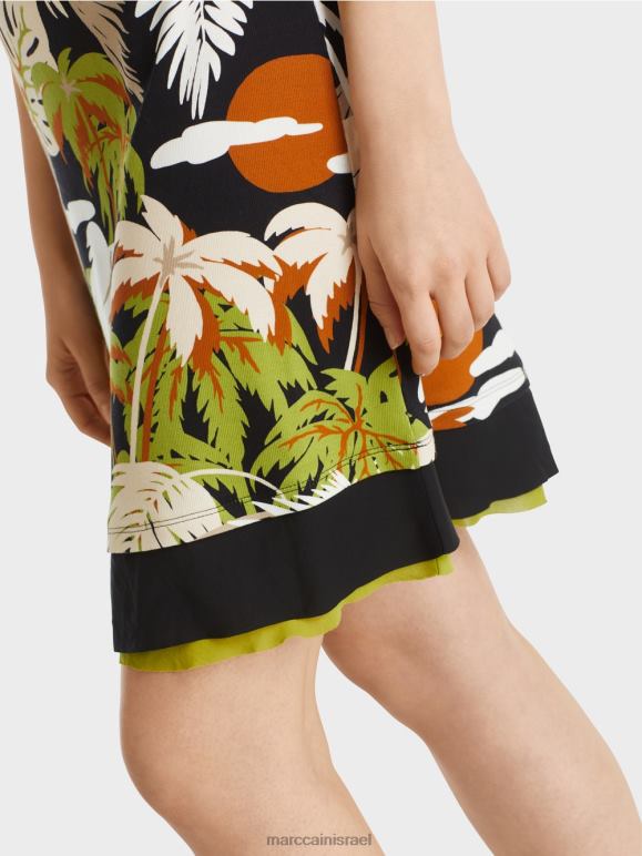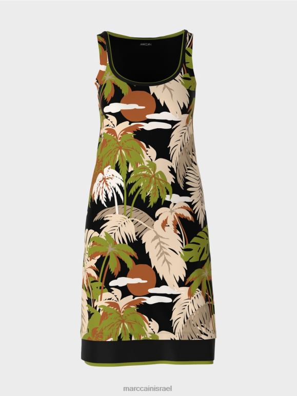 השמלה המחבקת את הגוף מודפסת בדוגמא של עץ דקל שגורם לך להשתוקק לשמש, לחוף הים וים. השמלה ללא שרוולים עשויה כותנה עם אלסטן ולכן נוחה במיוחד. עיצוב הצלעות מוסיף מגע ספורטיבי.