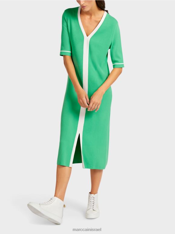 שמלה סרוגה אופנתית עם תווית הקיימות "לחשוב מחדש". השמלה ישרה בגזרה ובעלת צווארון V וכיסם שסע בצבעים מנוגדים. השמלה הזו סרוגה ומוגמרת בשטח שלנו בגרמניה. עיבוד נוסף של החלקים הבודדים מתבצע על ידי החברות השותפות שלנו באירופה. זה הופך את הפריט ל"סרוג בגרמניה".