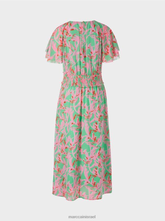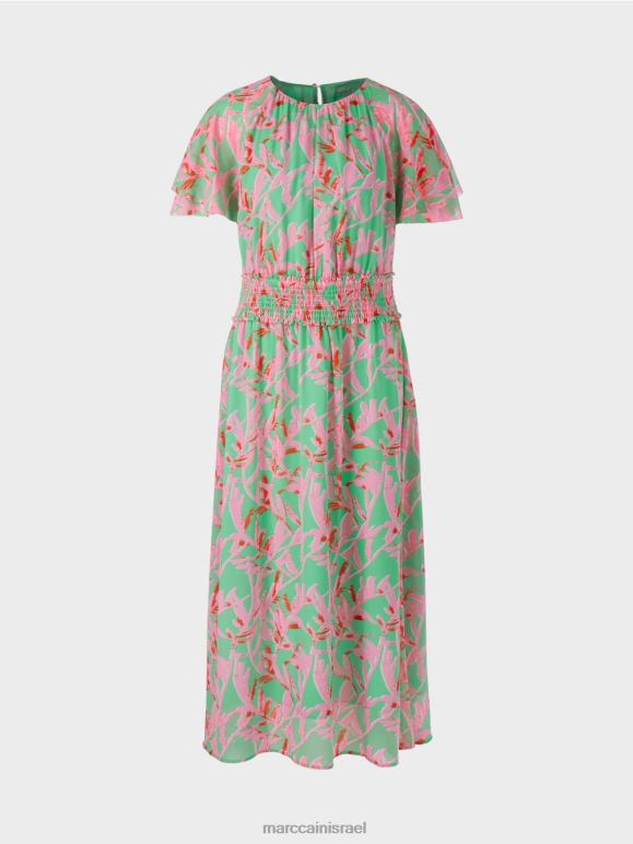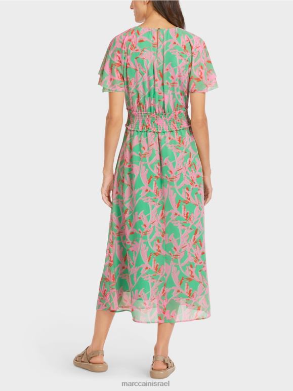 שמלה קיצית עם וילון רך. תערובת ההדפסים הצבעונית של השמלה יוצרת מצב רוח בהיר ושמח. הוא רופף אבל הוא גימור עם פרט חלוק רחב במותניים ויוצר צללית נשית. שרוולי הראגלן הקצרים בצורת כנפיים ומחזקים את העיצוב השובב. לצוואר הצוות יש הידוק כפתורים בעורף.