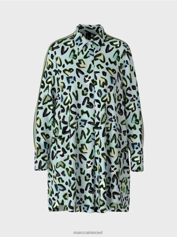 שמלת החולצה עשויה מכותנה אורגנית ונושאת את תווית הקיימות "לחשוב מחדש ביחד". הצללית היא מעט בצורת A. תכונות פונקציונליות כוללות כיסום כפתורים סמוי ושרוולים מחושלים. ההדפס הכולל מוטיב בהשראת גרפיטי. גבול פסים ספורטיבי משולב בכתף ובשרוול. זה עשוי רשת וקצוות בצבעים מנוגדים.