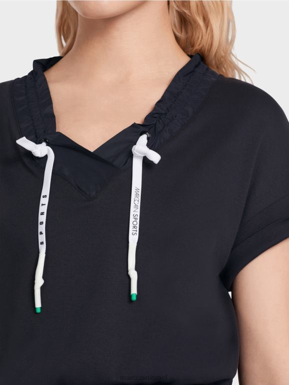 שמלה בגזרה יומיומית עשויה משילוב של חומרים. שמלת קיץ בצבע אחיד זו כוללת חוט ספורט מנוגד של Mc בצווארון V המתכוונן. ניתן גם לכוונן את המותניים בנפרד על ידי רצועות אלסטיות. השרוולים מוצגים מופשלים כלאחר יד. את הגזרה הספורטיבית משלימים כיסים נוחים.