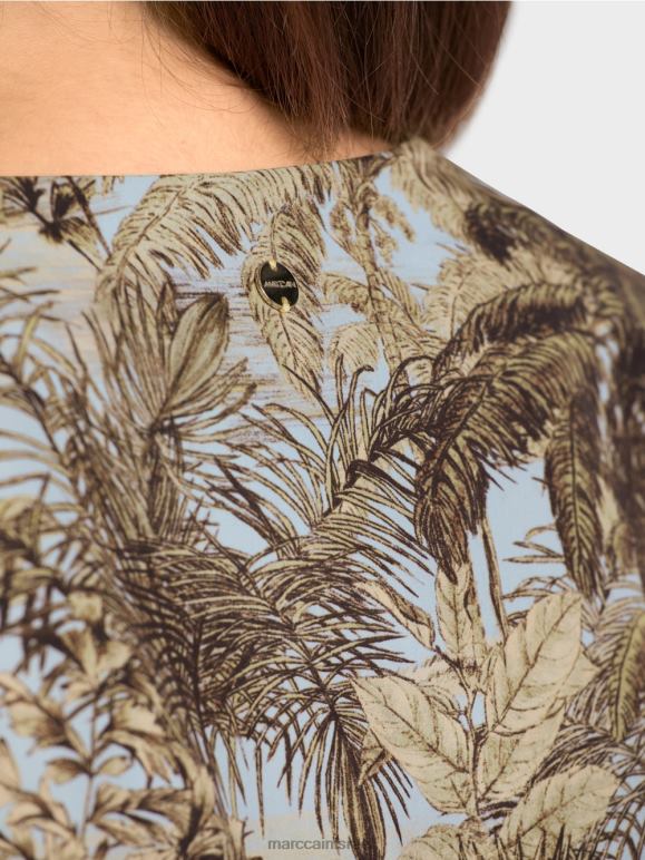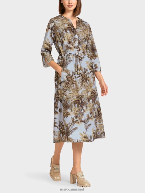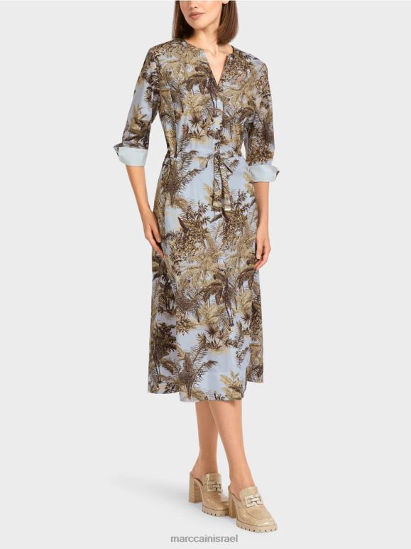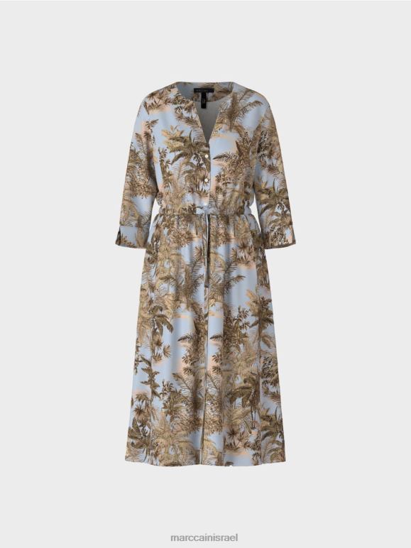 שמלת אוברסייז עם שרוך במותן. העיצוב חסר צווארון ויש לו כיסום כפתורים באורך מלא. החריצים הצדדיים מבטיחים חופש תנועה. שולי שלושת-רבעי השרוולים מחורצים וניתן להפנות אותם כלפי מעלה.