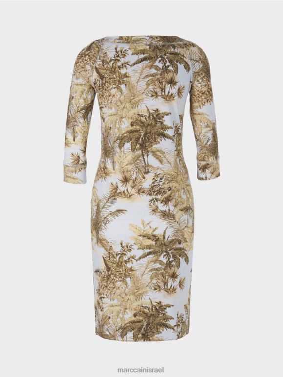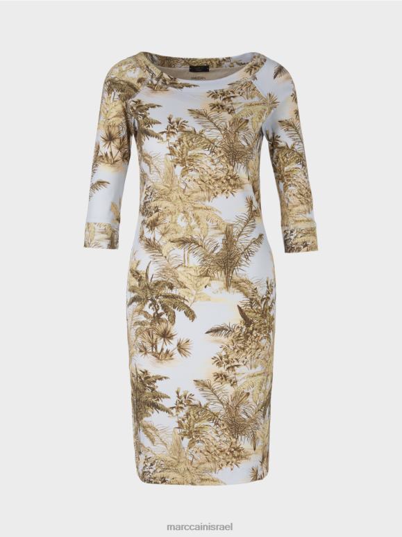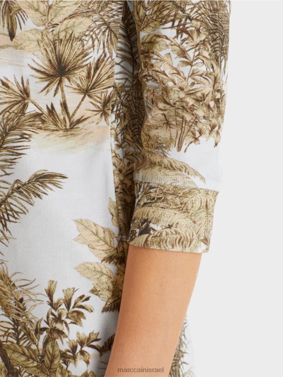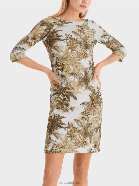 שמלה חובקת דמות מכותנה מתיחה לנוחות מושלמת. גולת הכותרת היא הדפס עץ הדקל האקזוטי שמושך את עיני כולם. לדגם יש שרוולים באורך שלושה רבעים וצווארון עגול.