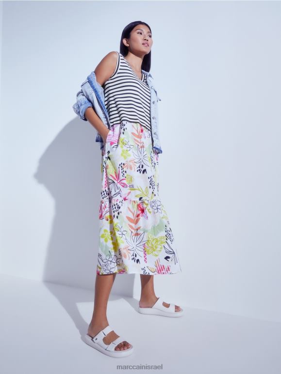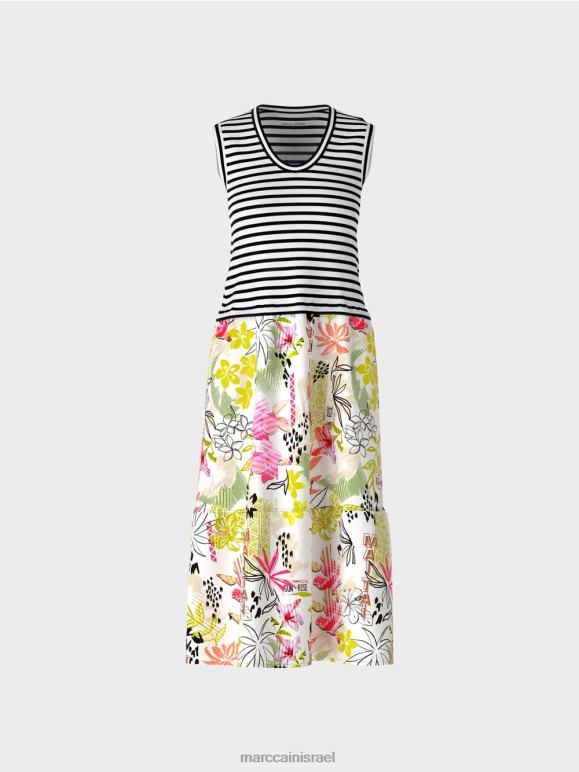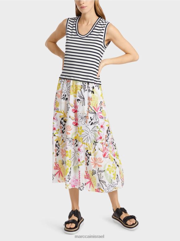 שמלה קיצית מכותנה ואלסטן. בין אם פסים ימיים או דפוס פרחוני רומנטי, השמלה הזו משלבת את שניהם בשילוב אופנתי של דוגמאות. ובעוד שהחלק העליון ללא שרוולים עם צווארון צוואר מחבק דמויות, חצאית הפלאנס יוצרת רוחב רומנטי באורך מידי.