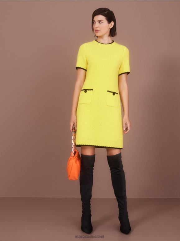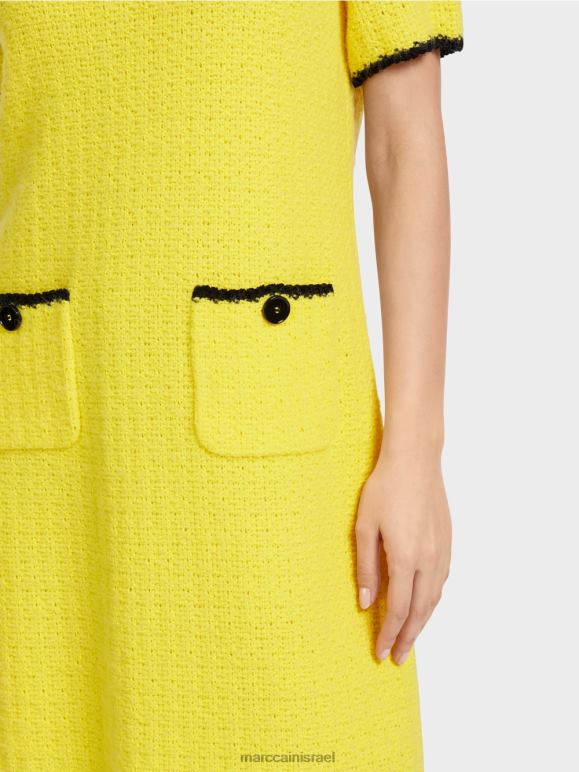 שמלת מיני בגזרה ספורטיבית עם צללית חצאית מעט מתרחבת. ניגודי הצבע על השרוולים הקצרים, הצווארון העגול וכיסי התיקון כולם מושכים את העין. השמלה נסרגת מתערובת מושלמת של כותנה, אנגורה, צמר ואלפקה באתר הייצור בגרמניה, שם היא גם מוגמרת. המשך העיבוד של החלקים הבודדים מתבצע על ידי חברות שותפות אירופאיות. זה אומר שהפריט "סרוג בגרמניה".