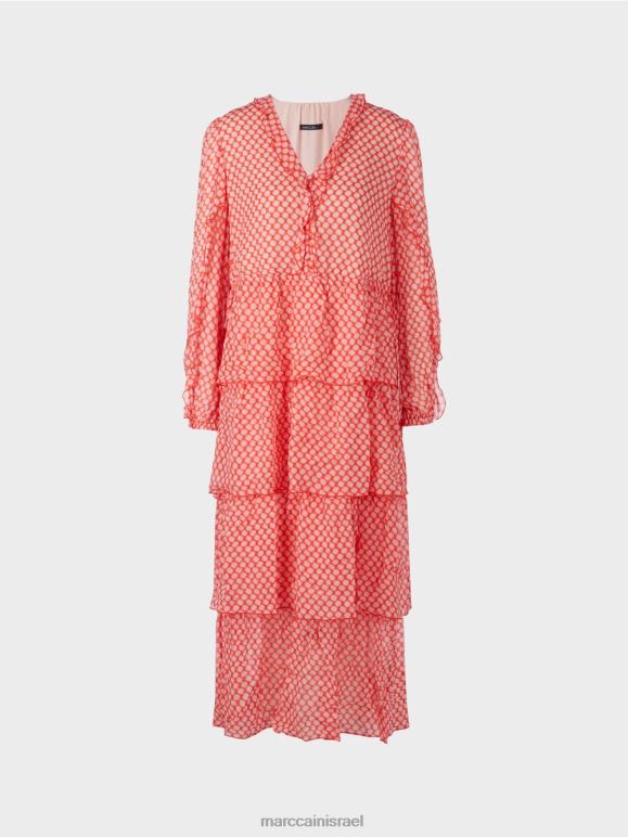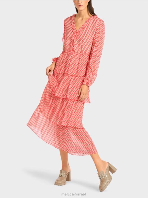 שמלה רומנטית. השמלה הארוכה הזו מעוטרת כולה בדוגמת נקודות ומציגה פלאנטים די מדורגים. המותן נמתח ומגיע עם רצועת קשירה בצבע תואם. שולי השרוולים גם נמתחים מה שמעניק להם מלאות נוספת. פרטי סלסול וסגירת כפתורים מניחים את המראה הנשי הזה. כל אחד מכוסה בנפרד ויש לו לוגו מתכת של Mc.