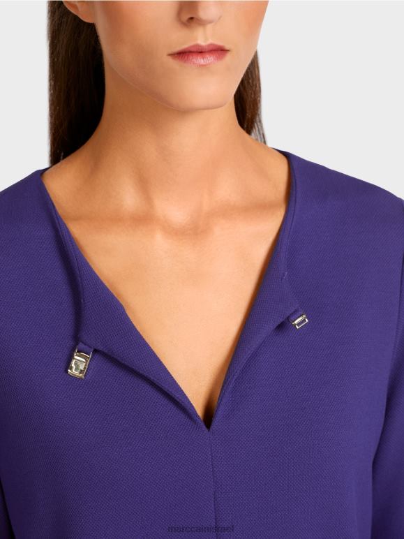 שמלה זו מיוצרת בתערובת ויסקוזה רכה עם אלסטן. הגזרה הישרה מתחדשת על ידי הפרטים החסומים בצבע על המכפלת. הצוואר המעוגל בעל שסע ואבזם מתכת בצבע זהב. השרוולים מעט מתרחבים. כיסים אנכיים משולבים מוסיפים מגע אחרון לשמלת הרטרו הזו.