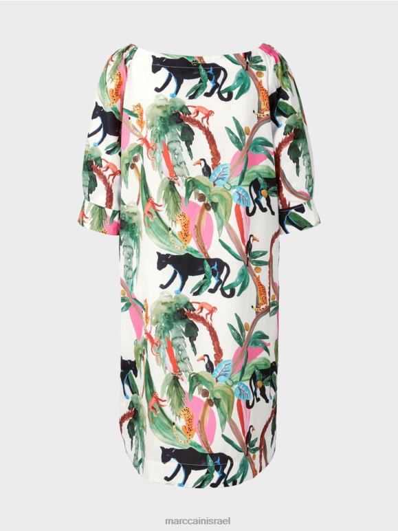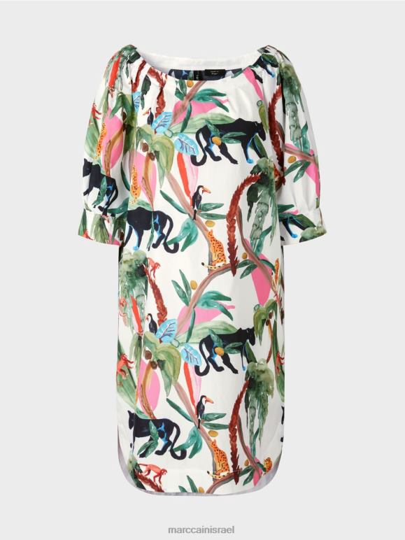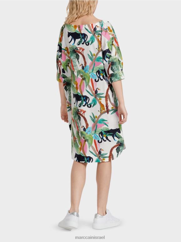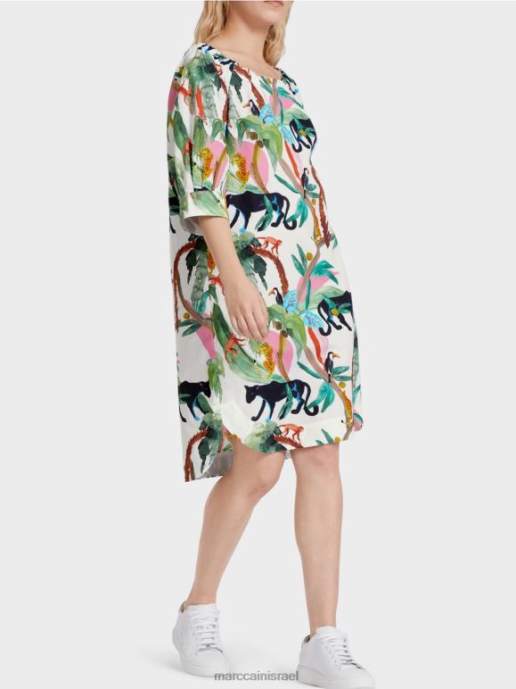 שמלת קיץ רפויה מכותנה. השמלה המשוחררת הזו מעוטרת בהדפס ג'ונגל מסוגנן. זה מגיע עם חריצים ארוכים יותר בגב ובצד. לקו הצוואר העגול הגדול יש איסוף שובב. הגזרה מעוגלת עם שרוולי ראגלן באורך חצי עם חפתים רחבים.