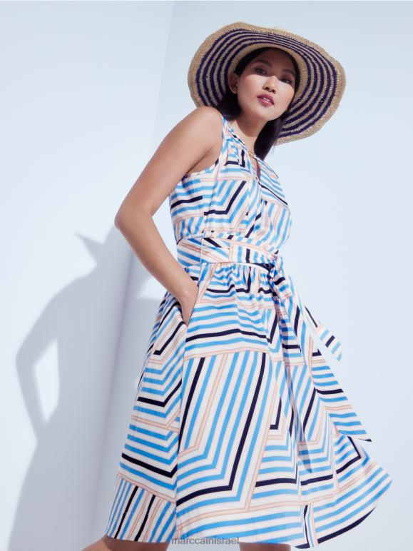 שמלת קיץ ללא שרוולים עם חגורת קשירה. הגזרה המשובבת של שמלת הפסים הזו מושכת את עיניהם של הצופים. החלק העליון נטול שרוולים וחובק דמות. החצאית עד הברך מגיעה בצורת A. פרט מקסים אחד הוא הלוגו של Mc על צווארון ה-V הצר. השמלה מהודקת בדיסקרטיות עם רוכסן מאחור.