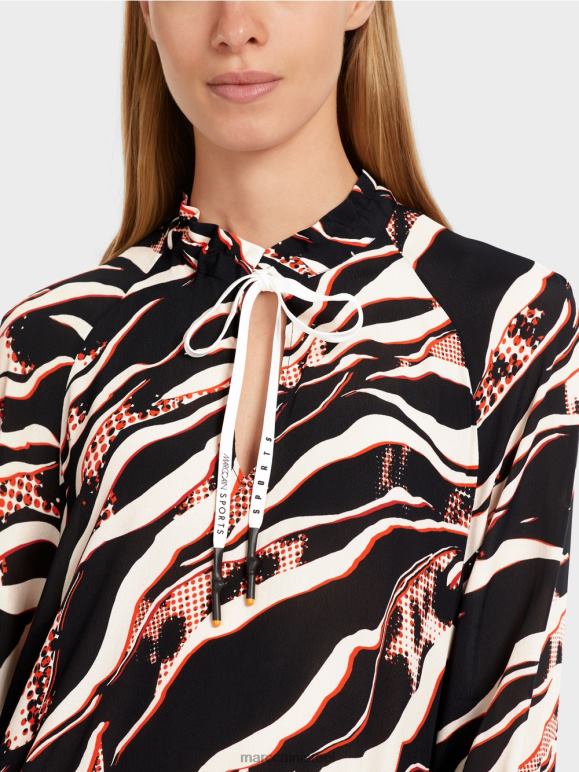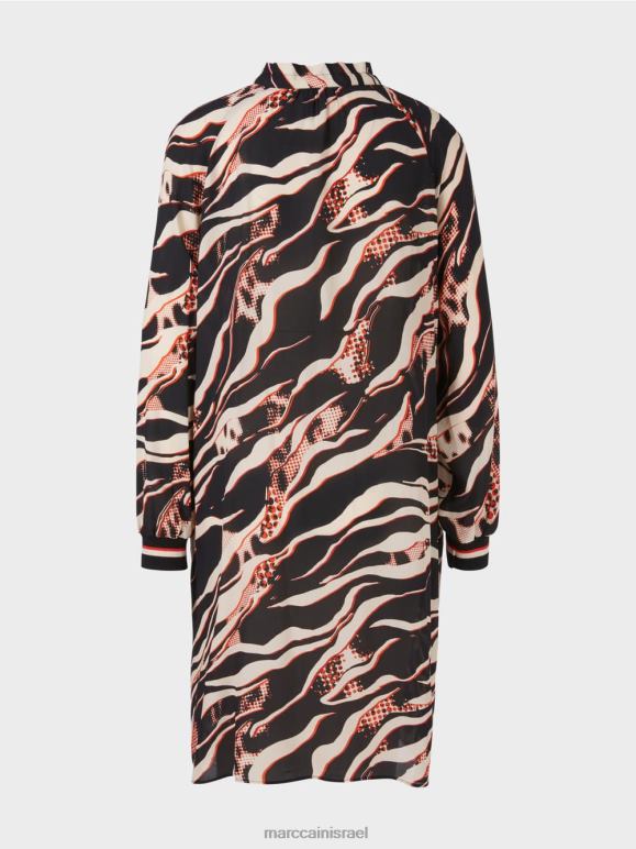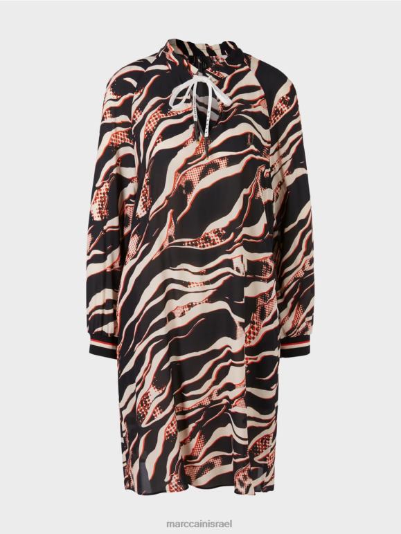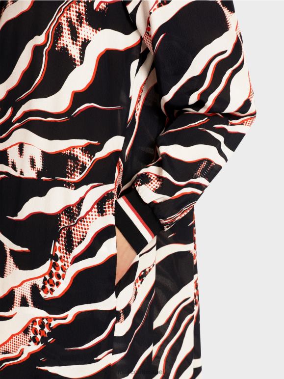 שמלה ספורטיבית עשויה ויסקוזה רך וזורם. הצללית מוגדרת על ידי שרוול Raglan ו-a-line. אלמנטים בסגנון ספורטיבי כוללים את השרוול הסרוג ואת הסרט הצבעוני המנוגד שניתן להשתמש בו כדי להתאים את גודל הצווארון. הכיסים בתפר הצד הם פרט פונקציונלי.