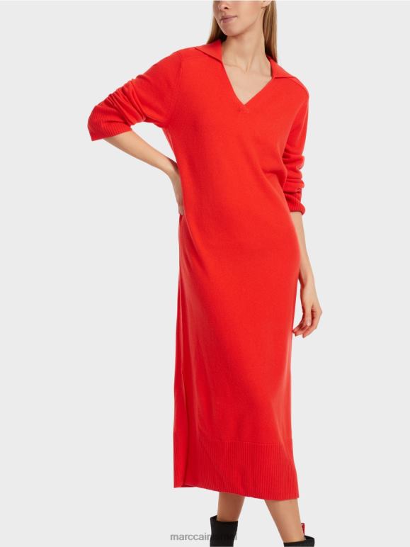 לשמלת הסריג כתפיים צרות והיא רחבה כלאחר יד מהשרוול ומטה. חופש תנועה נוסף מסופק על ידי חריץ הצד. המגע הספורטיבי מגיע באמצעות תוספות סריג מצולעות בתפר הכתפיים והתפר הצדדי - ופתרון צווארון המשלב צווארון V וצווארון פולו. תכולת הקשמיר הופכת את הסריג לסופר רך על העור.