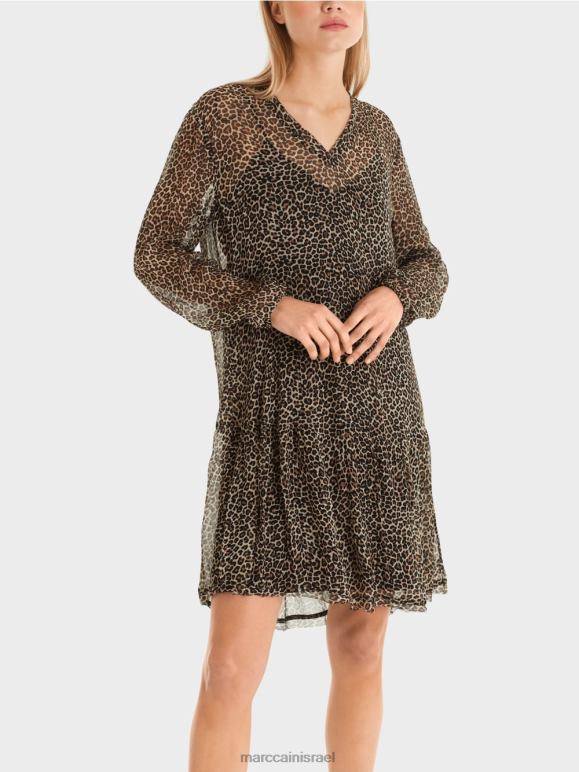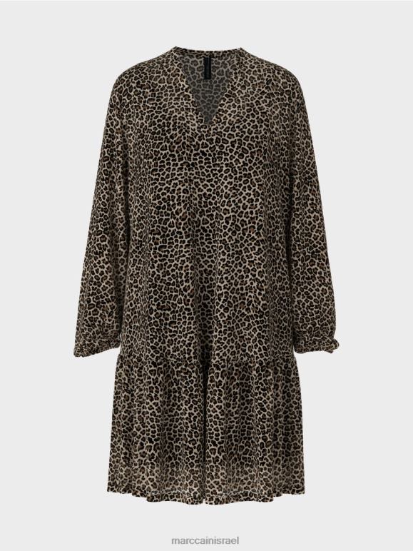 השמלה הזו עשויה מקרפ ויסקוזה עדין עם הדפס על הכל. קל משקל ומעט שקוף, הוא נלבש עם החלקה. יש כרכים עם קצוות מרוטים בצווארון ה-V ובשוליים. השכבות הנמוכות מעניקות לו מראה אופנתי. השרוולים גמורים עם עיטור אלסטי.
