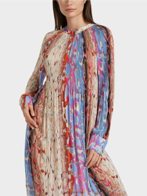 שמלה רחבה בחומר זורם מתווית הקיימות "לחשוב מחדש ביחד". החלק העליון הקפלים של השמלה הזו יוצר מראה אקסקלוסיבי. זה נותן לשמלה תנופה נשית. יש לו הדפס צבעוני על-גבי המתאים. חפתים רחבים על שרוולי הראגלן וצווארון סטנד-אפ שסע עם כפתור ביג'ו משלימים את הסגנון יוצא הדופן.