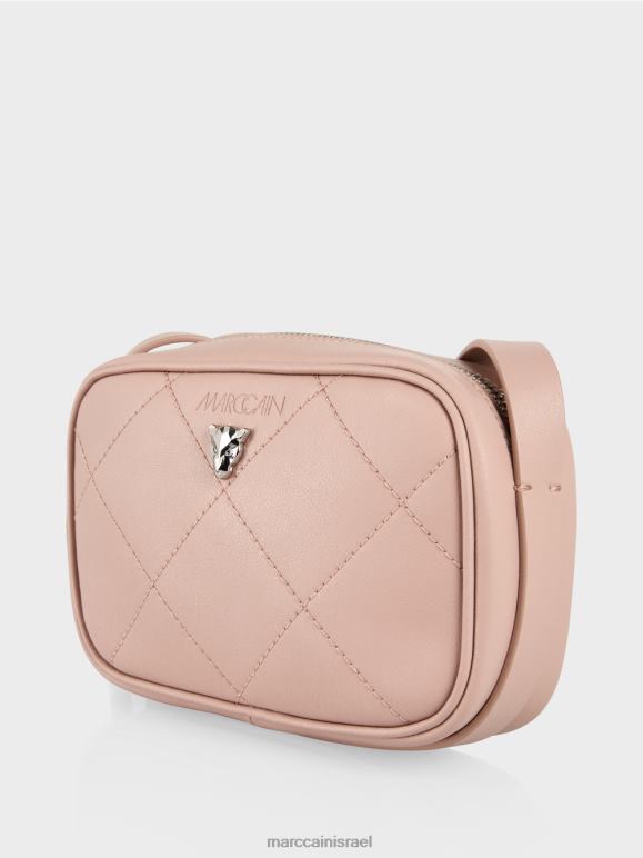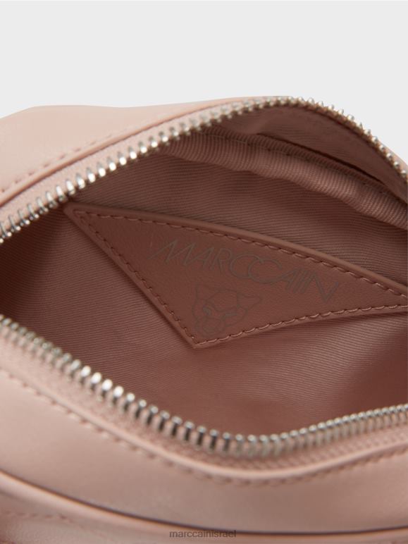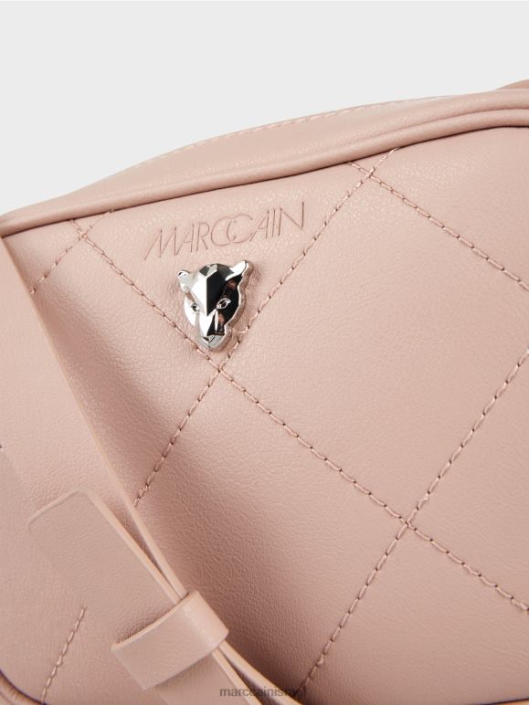 לתיק הכתף יש צורה קובית עם פינות מעוגלות. בשל התפירה האלכסונית, יש לו צורה יציבה. רצועת הכתף מקובעת לתחתית התיק ועולה לצדדים. האלמנט הדקורטיבי הוא ראש העיצוב של Marc Cain Leo במתכת בחזית. הפריט נושא את תווית הקיימות "חשבו מחדש ביחד".